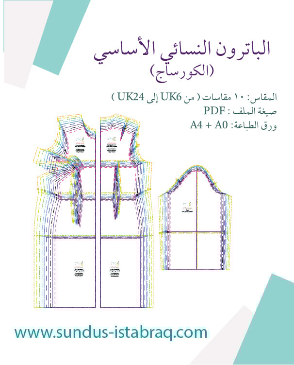 1- ملف pdf : الباترونات بجميع المقاسات بنسختين للطباعة ( A0 + A4 )